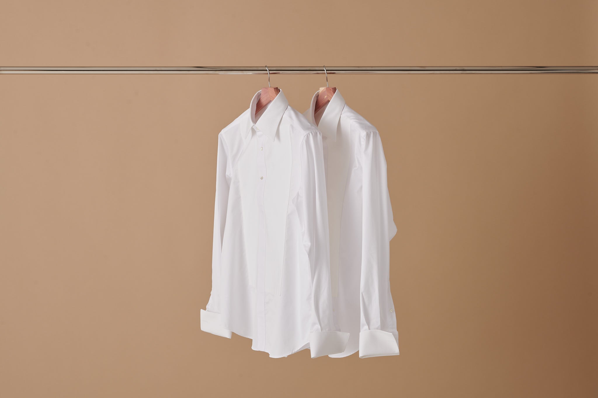 Tuxedo shirt with collar, chest and French cuffs in marcella pique, which further elevates the elegant appearance of your tuxedo. This tuxedo shirt has a smooth button placket with a hidden button. The tuxedo shirt's other design attributes consist of: White Twill fabric, Full spread collar, angular French cuff, Nemo mother-of-pearl buttons and back stitching for the best fit. Are you looking for a button-down tuxedo shirt that has room for removable chest buttons? Then choose MARCELLA STUD BIB instead.