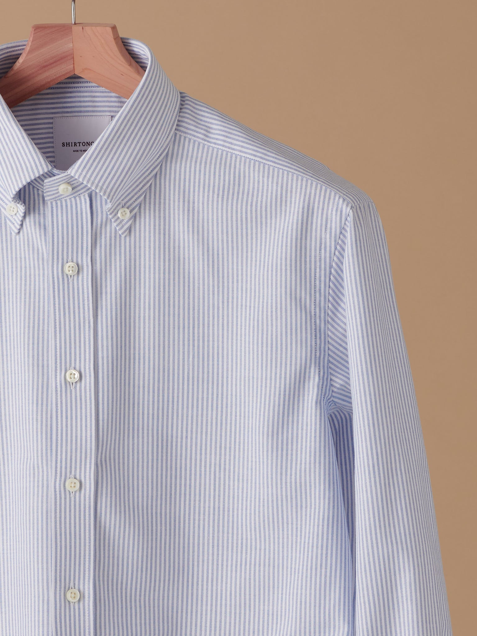 Oxford fabric with a classic mid-blue stripe, evoking the style of the American East Coast. A perfect companion on campus as well as during the holidays. Pair it with a button-down collar for an informal look, or opt for a spread collar to create a dressed-up impression with a twist. The fabric is woven in Portugal and becomes increasingly softer the more you wear and wash the shirt.