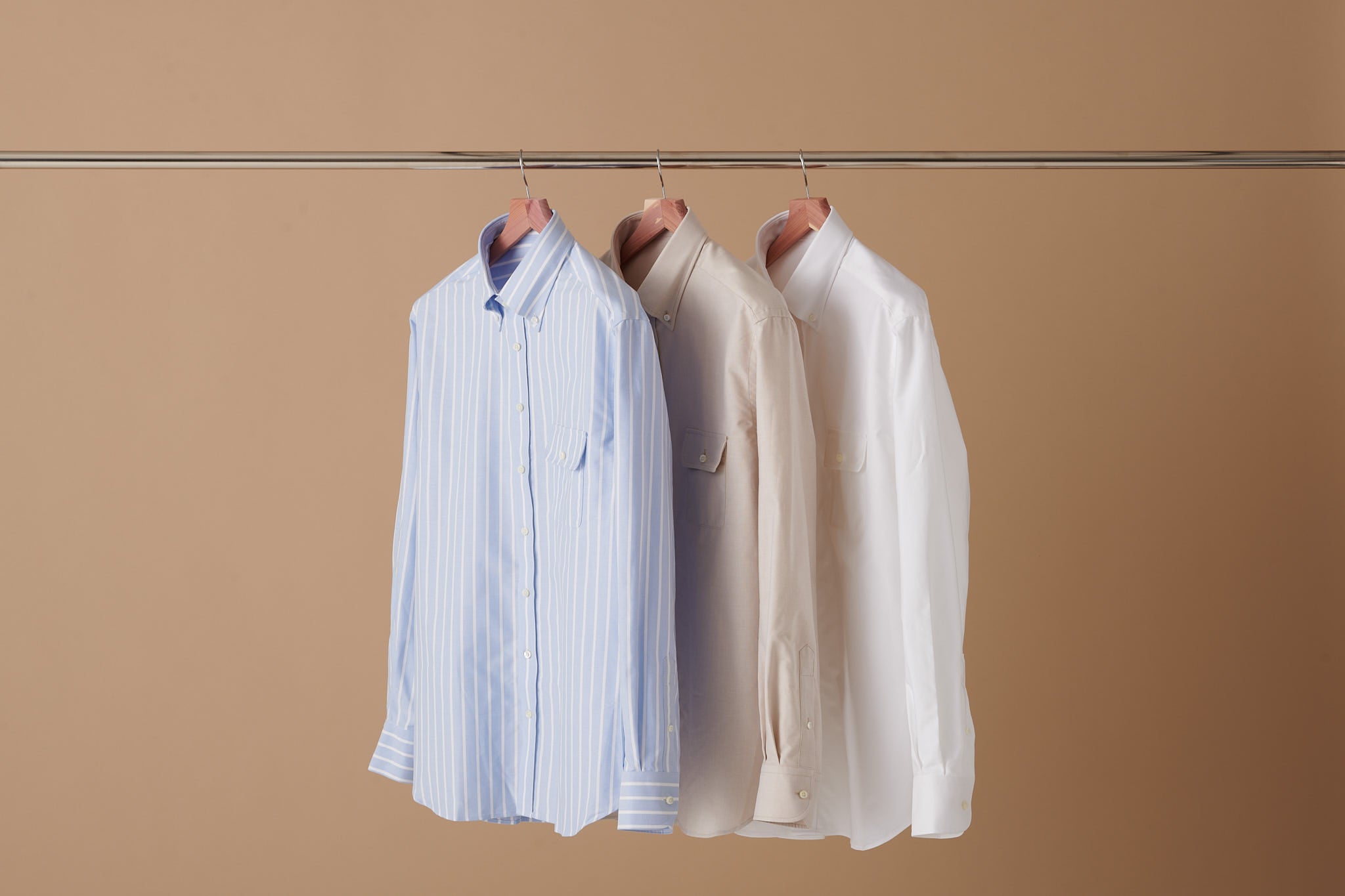 Heavy light beige coarser quality oxford fabric. The fabric consists of short cotton fibers, which gives the fabric weight and a rustic feel. A true classic among academics and which, combined with the button down collar, has become a hallmark of the American East Coast. The fabric is woven in Portugal from double-twisted yarn from short-fibre cotton, which over time acquires an increasingly pleasant feel the more you use it.