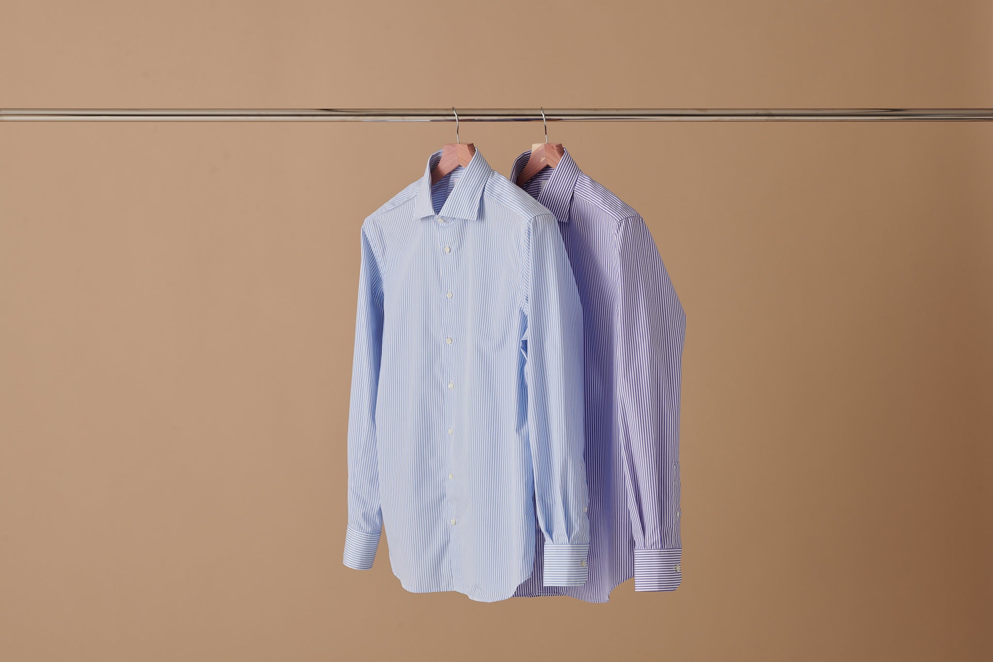 The light blue Bengal stripe has won many loyal followers thanks to its versatility and sober appearance. Fits equally well with a cutaway or button down collar, depending on the occasion of use and personal preference. The fabric is woven in Italy from double-twisted yarn from long-staple Egyptian cotton and has a good ability to resist wrinkles.
