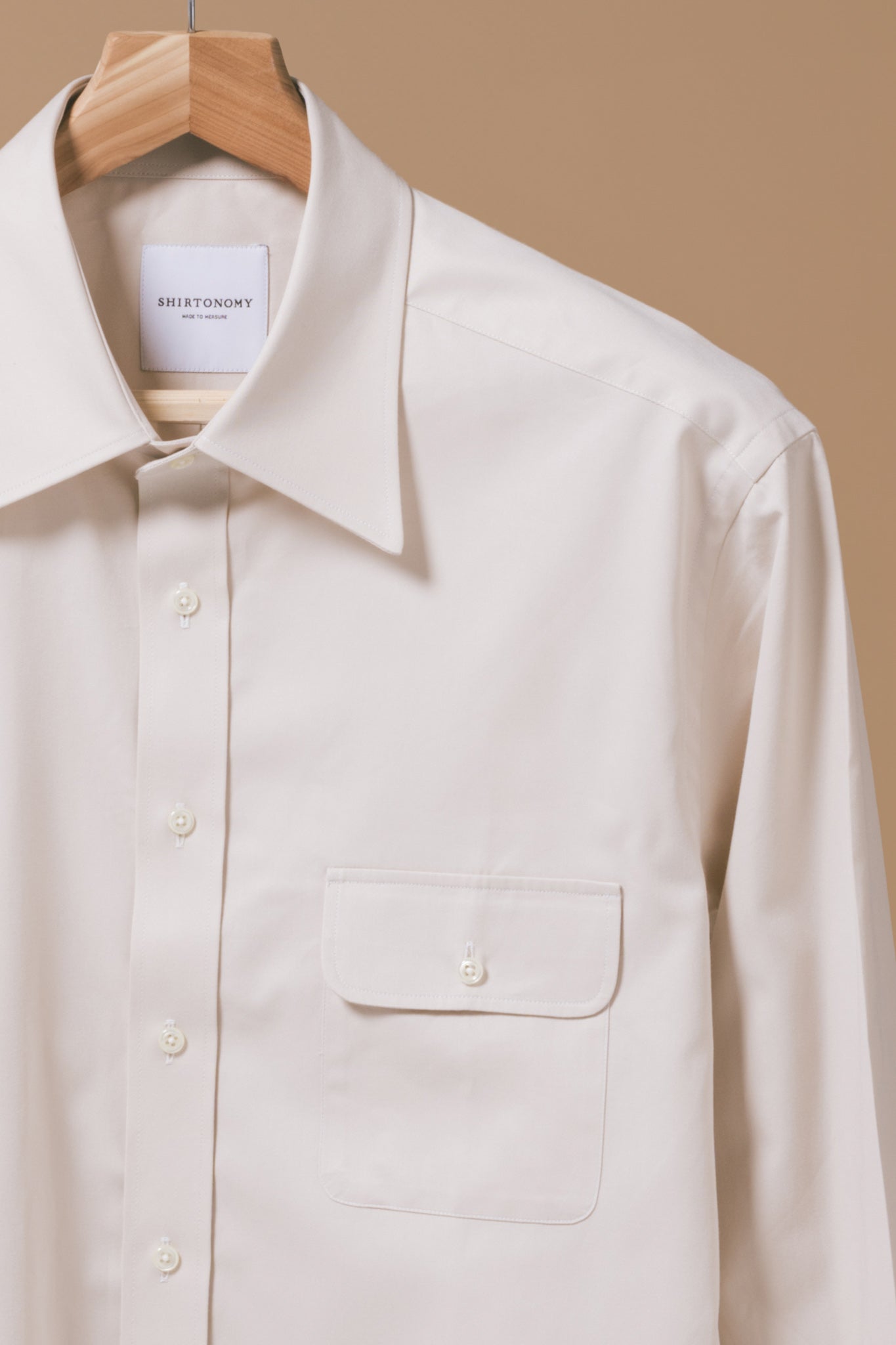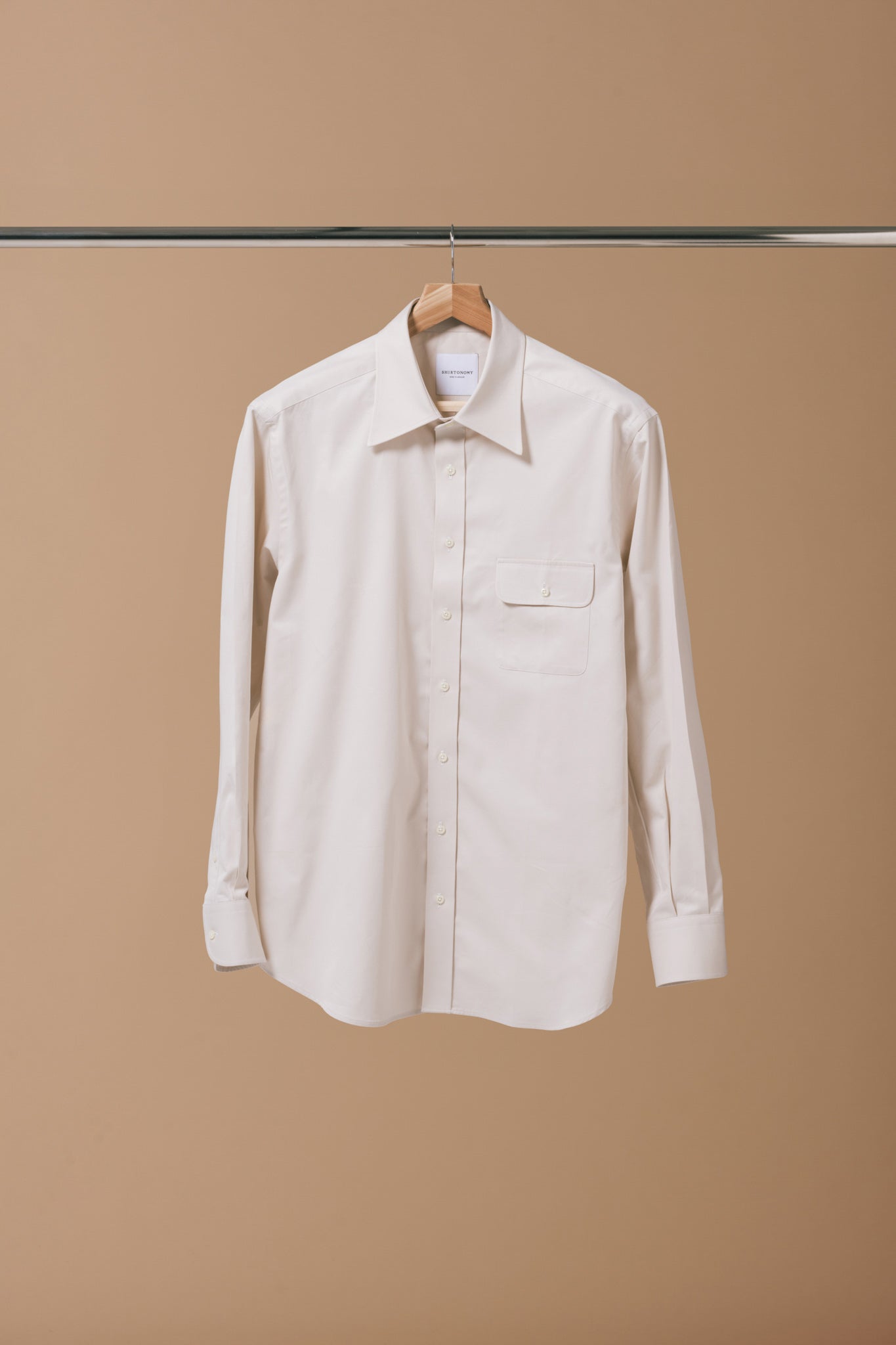 Twill i 100% bomull med matt yta och följsamt fall. Skjortan har en benvit nyans med kall underton. Tyget utvecklar med tiden en personlig patina och slits vackert i sömmarna – med en karaktär som för tankarna till denim. Ett utmärkt alternativ till vår Oxford i användningsområde: passar lika bra till mer casualkostymer som till jeans. Bärs gärna lätt uppknäppt över ett linne för en ledig och genomtänkt stil.