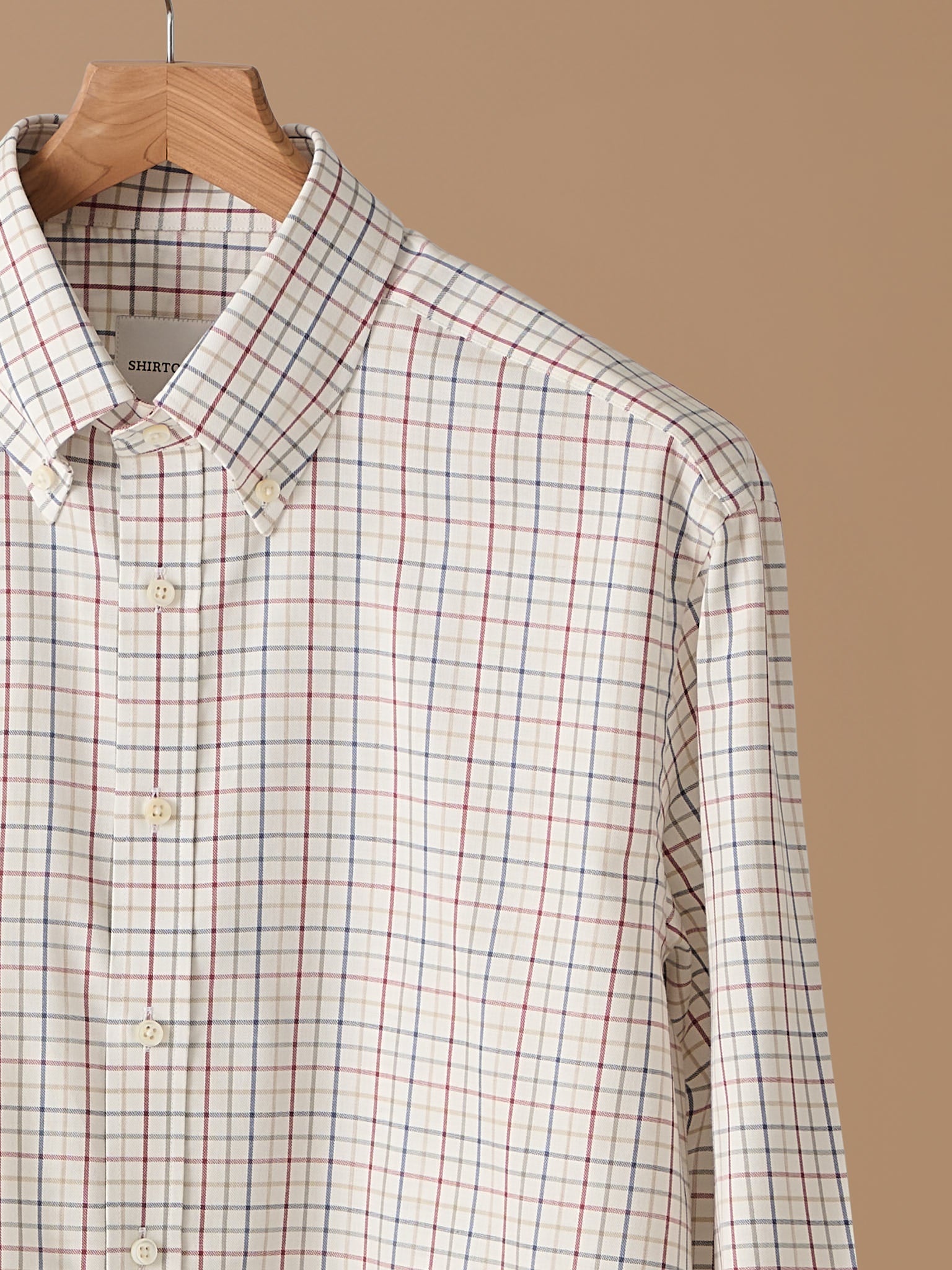Som standard för skjortans knapphålssömar så sys dessa med en trådfärg som matchar tygets färg.