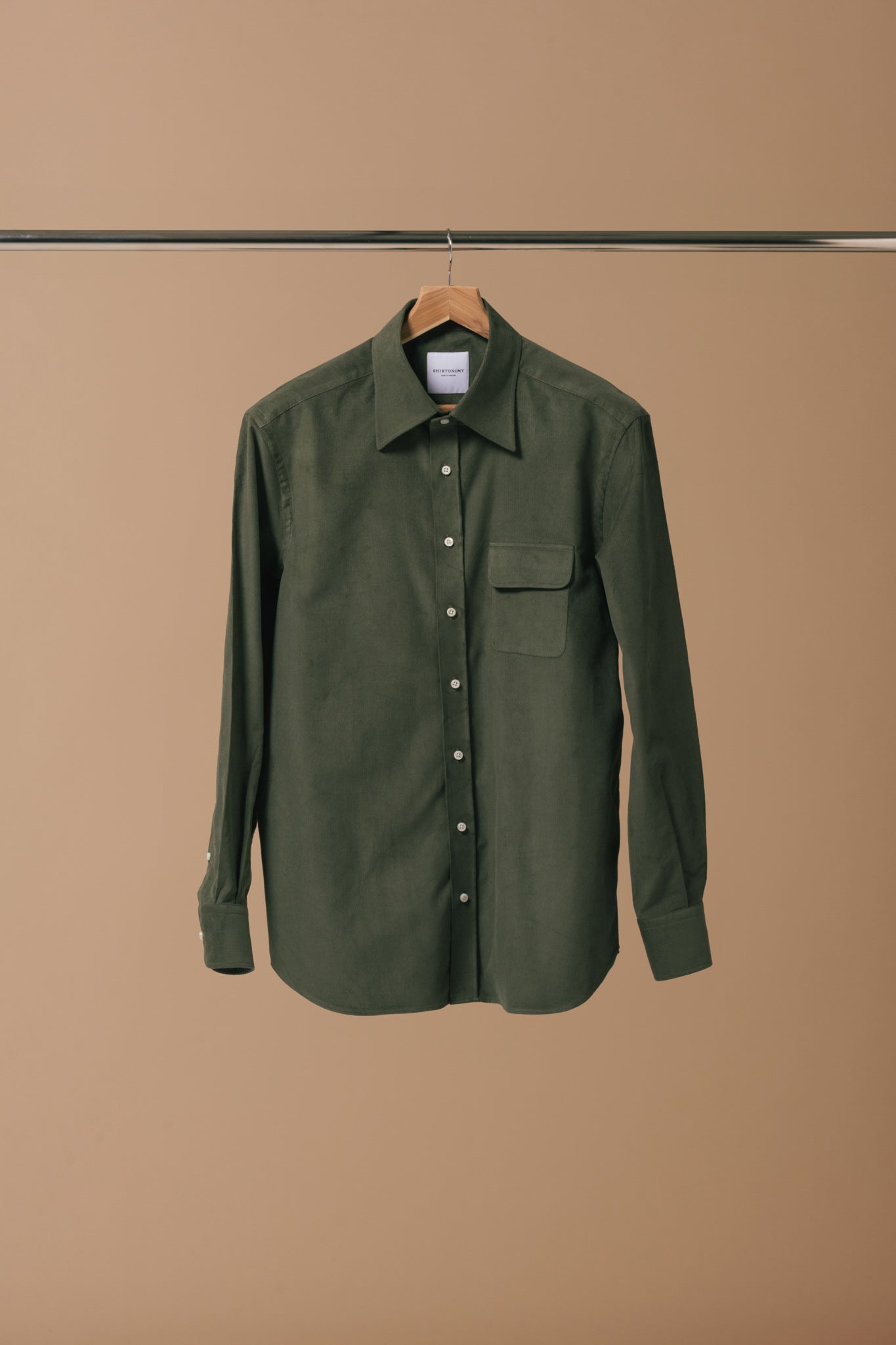 Twill i 100% bomull med matt yta och följsamt fall. Skjortan har en djup skogsgrön nyans. Tyget utvecklar med tiden en personlig patina och slits vackert i sömmarna – med en karaktär som för tankarna till denim. Ett utmärkt alternativ till vår Oxford i användningsområde: passar lika bra till mer casualkostymer som till jeans. Bärs gärna lätt uppknäppt över ett linne för en ledig och genomtänkt stil.
