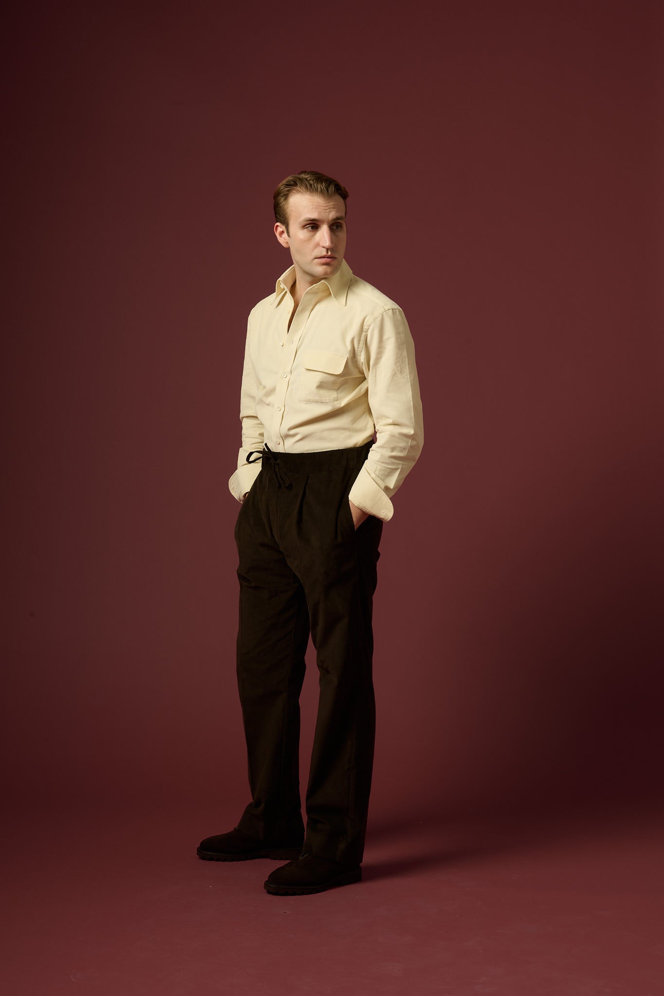 Minimanchester i 100% bomull, ett mjukt och slitstarkt tyg med subtila ribbor som tillför både struktur och elegans. Tygets djupa toner skapar en mångsidig look som passar perfekt för både avslappnade och mer stilrena tillfällen. Byxorna är made to order och levereras i en låst design för en noga balanserad passform och stil. Serien finns i tre sofistikerade färger – vaniljvit, svart och chokladbrunt – vilket ger dig möjlighet att skapa din egen personliga look. Tyget vävs i Spanien och kan tvättas ut och in i 40 grader för smidig skötsel och lång hållbarhet.
