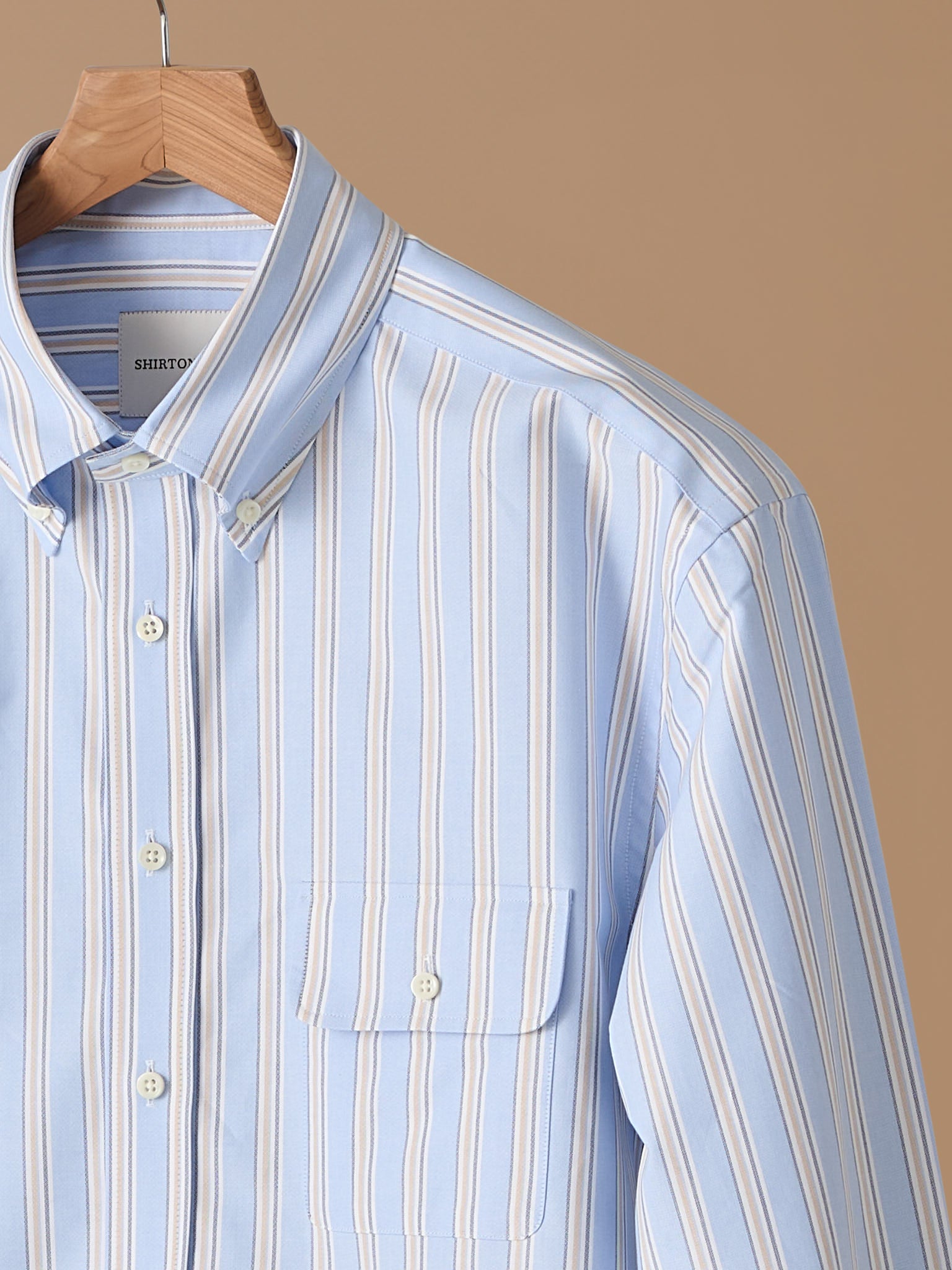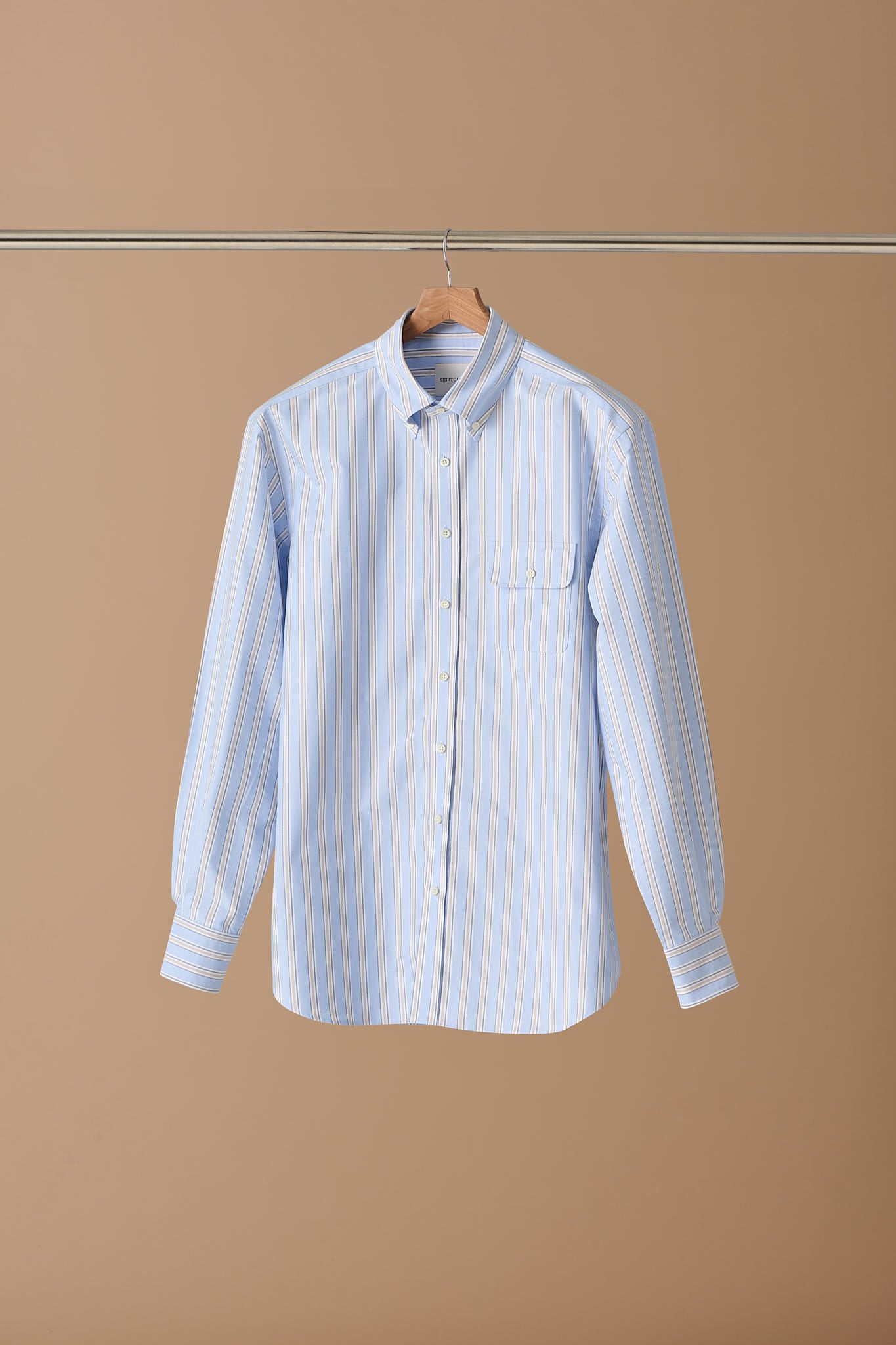 Button down-krage av mer klassiskt snitt. Kragen är lika hemtam i styrelserumet på en amerikansk investmentbank som med en dubbel espresso på en uteservering i Florence. De långa snibbar i kombination med avståndet mellan knapparna skapar en påtaglig "soft roll". Kragens tilltagna proportion gör att den gör sig bäst med slips och kavaj. Om du bär slips till denna krage så skall knuten vara av smalare variant (typ four in hand) för att uppnå harmoni med kragens snibbar. Om du är ute efter en mer casualbetonad krage bör du istället överväga Sport Button Down. Tänk på att du aldrig bör bära button down-krage vid de allra mest formella tillställningarna så som bröllop eller begravning.
