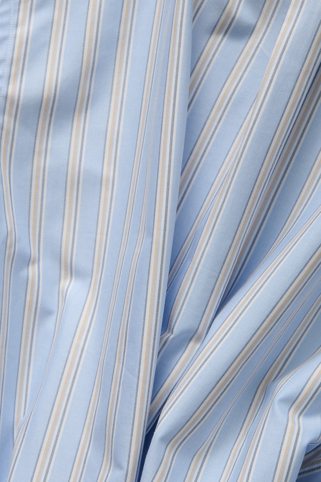 Oxford i multi rand med inspiration från klassiska amerikanska fun stripes. Tyget är vävt i Portugal av dubbeltvinnat garn från kortfibrig bomull, vilket ger en rustik struktur och skön tyngd. Färgkombinationen är lekfull men förankrad i tradition – en modern tolkning av ett ikoniskt uttryck från den amerikanska östkusten. Ett tyg som bara blir bättre med tiden och som gör sig lika bra med button down-krage som i mer avslappnade sammanhang.