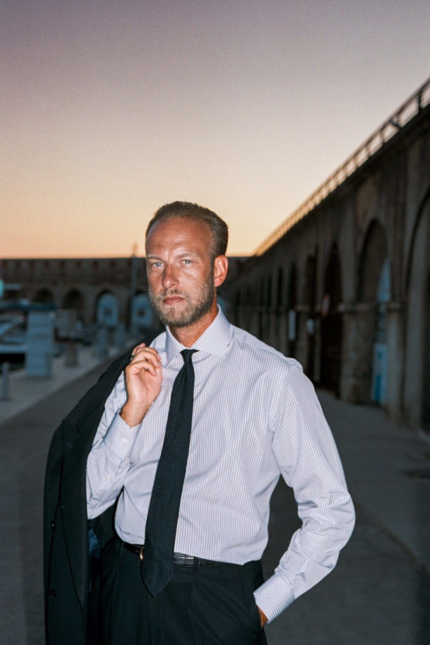 Klassisk fransk (dubbelvikt) manschett som alltid levererar ett klanderfritt, elegant och formellt intryck. Denna manschettmodell lämpar sig endast för de tillfällen du bär kostym eller kavaj och passar därför bäst tillsammans med något av våra mer formella tyger. Valet av rundad eller kantig fransk manschett är framförallt en smaksak, även om vissa vill hävda att den rundade varianten rör sig friare i kavajärmens öppning. Vi avråder från att kombinera denna manschett tillsammans med Button down-krage.