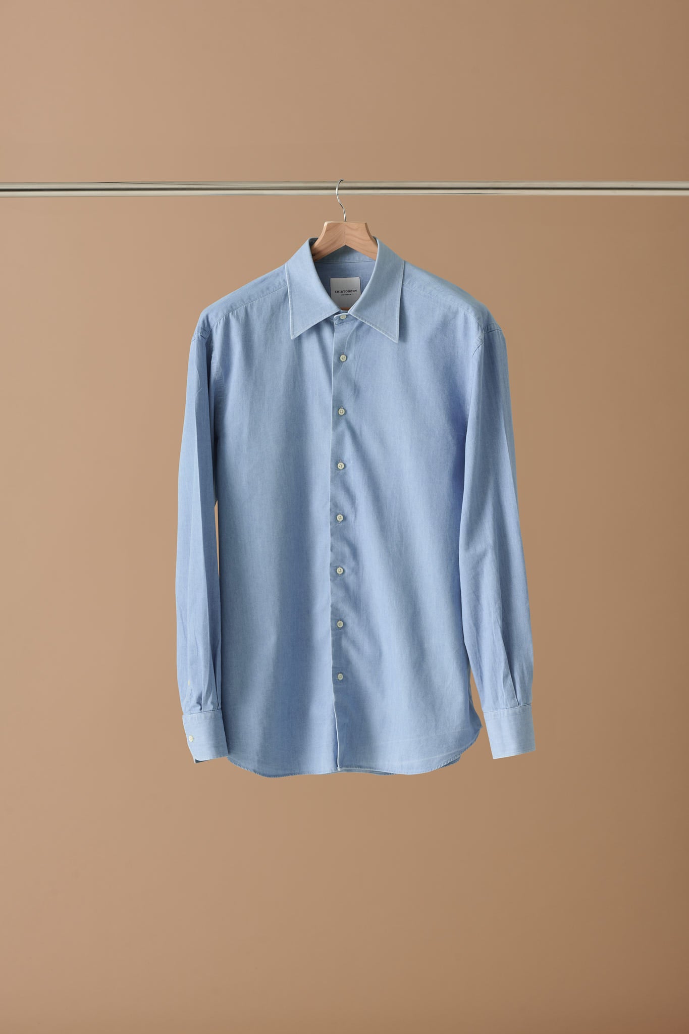 Vår nya denim i 100% bomull är en mångsidig och hållbar kvalitet som balanserar stil och komfort. Tygets subtila struktur och naturligt mjuka yta gör det till ett utmärkt val för både avslappnade och mer stilrena sammanhang. Serien lanseras i tre klassiska tvättar – svart, mellanblå och ljusblå. Dessa är färdigtvättade, vilket ger dem en subtil slitning och en behaglig känsla direkt från start, till skillnad från vår tyngre och otvättade Bergam Raw Denim. Kombineras förslagsvis med turndown-, spread- eller button down-krage och fungerar lika bra på egen hand som tillsammans med en kostym för en modern och avslappnad look. Tyget vävs i Spanien och kan tvättas ut och in i 40 grader för enkel skötsel och långvarig hållbarhet.