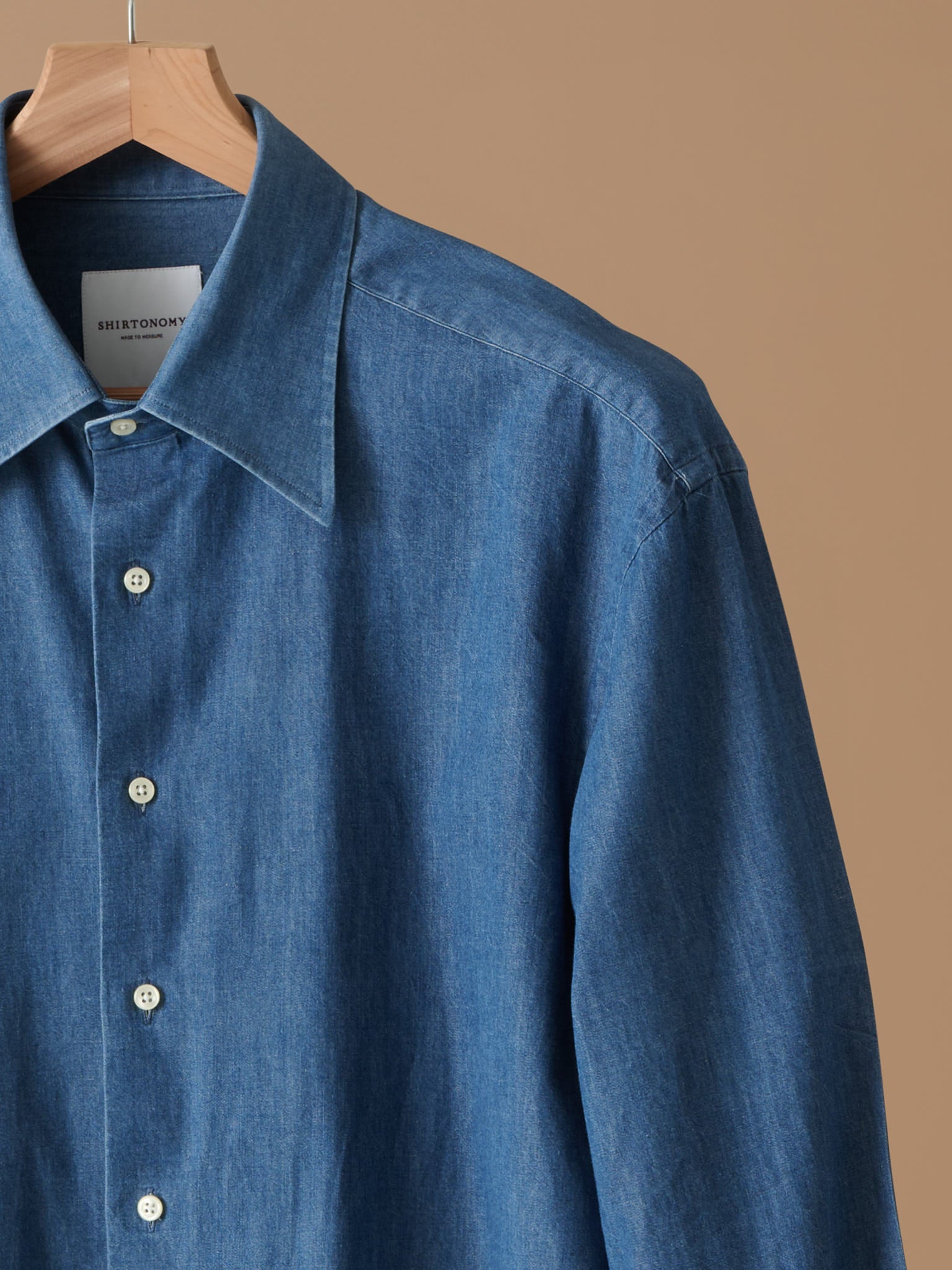 Vår nya denim i 100% bomull är en mångsidig och hållbar kvalitet som balanserar stil och komfort. Tygets subtila struktur och naturligt mjuka yta gör det till ett utmärkt val för både avslappnade och mer stilrena sammanhang. Serien lanseras i tre klassiska tvättar – svart, mellanblå och ljusblå. Dessa är färdigtvättade, vilket ger dem en subtil slitning och en behaglig känsla direkt från start, till skillnad från vår tyngre och otvättade Bergam Raw Denim. Kombineras förslagsvis med turndown-, spread- eller button down-krage och fungerar lika bra på egen hand som tillsammans med en kostym för en modern och avslappnad look. Tyget vävs i Spanien och kan tvättas ut och in i 40 grader för enkel skötsel och långvarig hållbarhet.