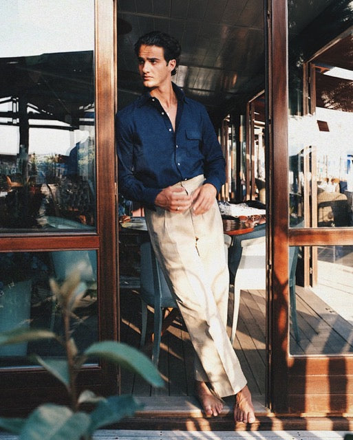 Popoverskjortans knappslå består av totalt fyra knappar (tre bröstknappar och en kragknapp) samt en avslutande förstärkt triangelsöm. Om du frågar oss så funkar de flesta kombinationer till popovern så länge de ger ett avslappnat intryck.