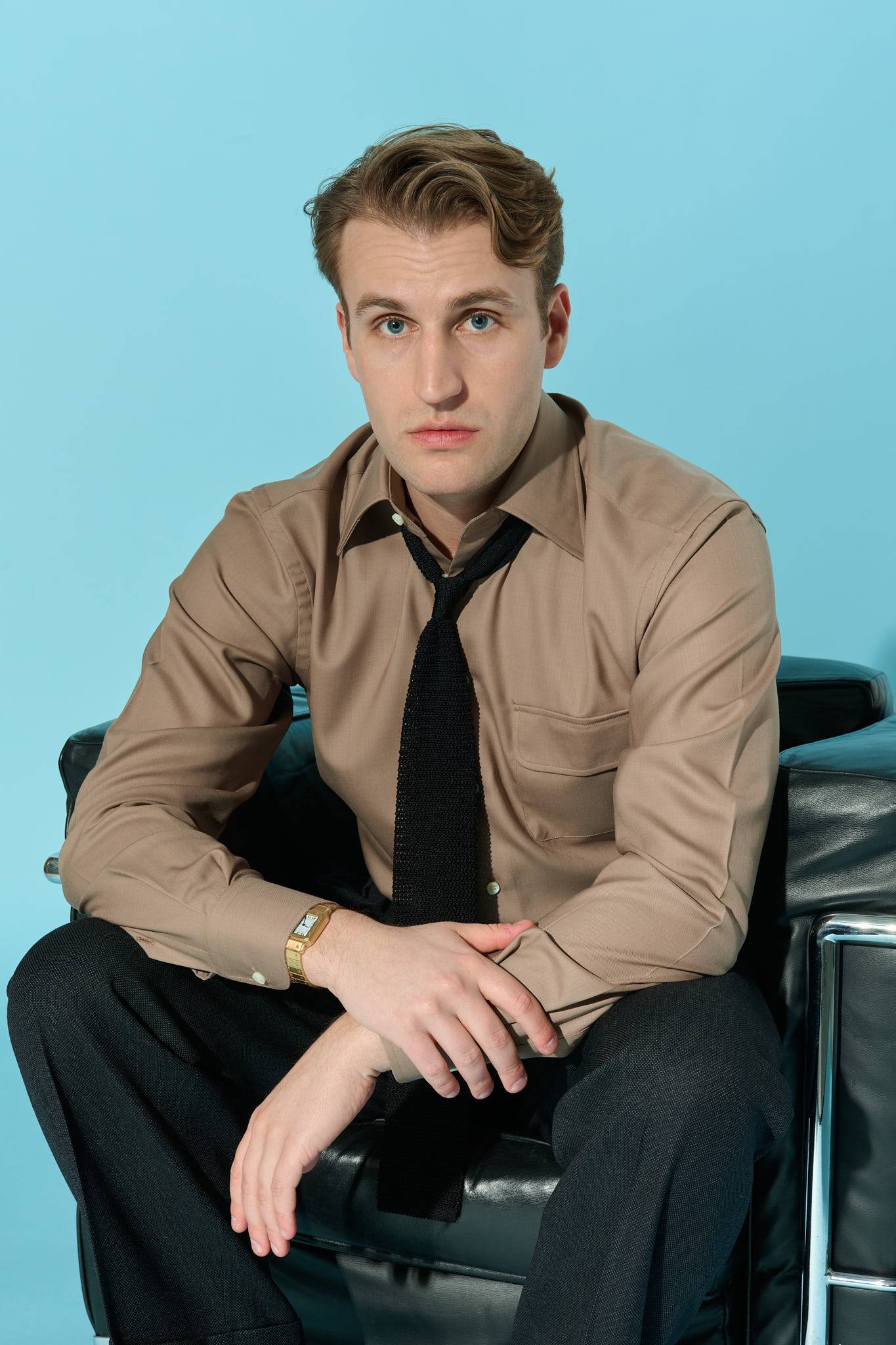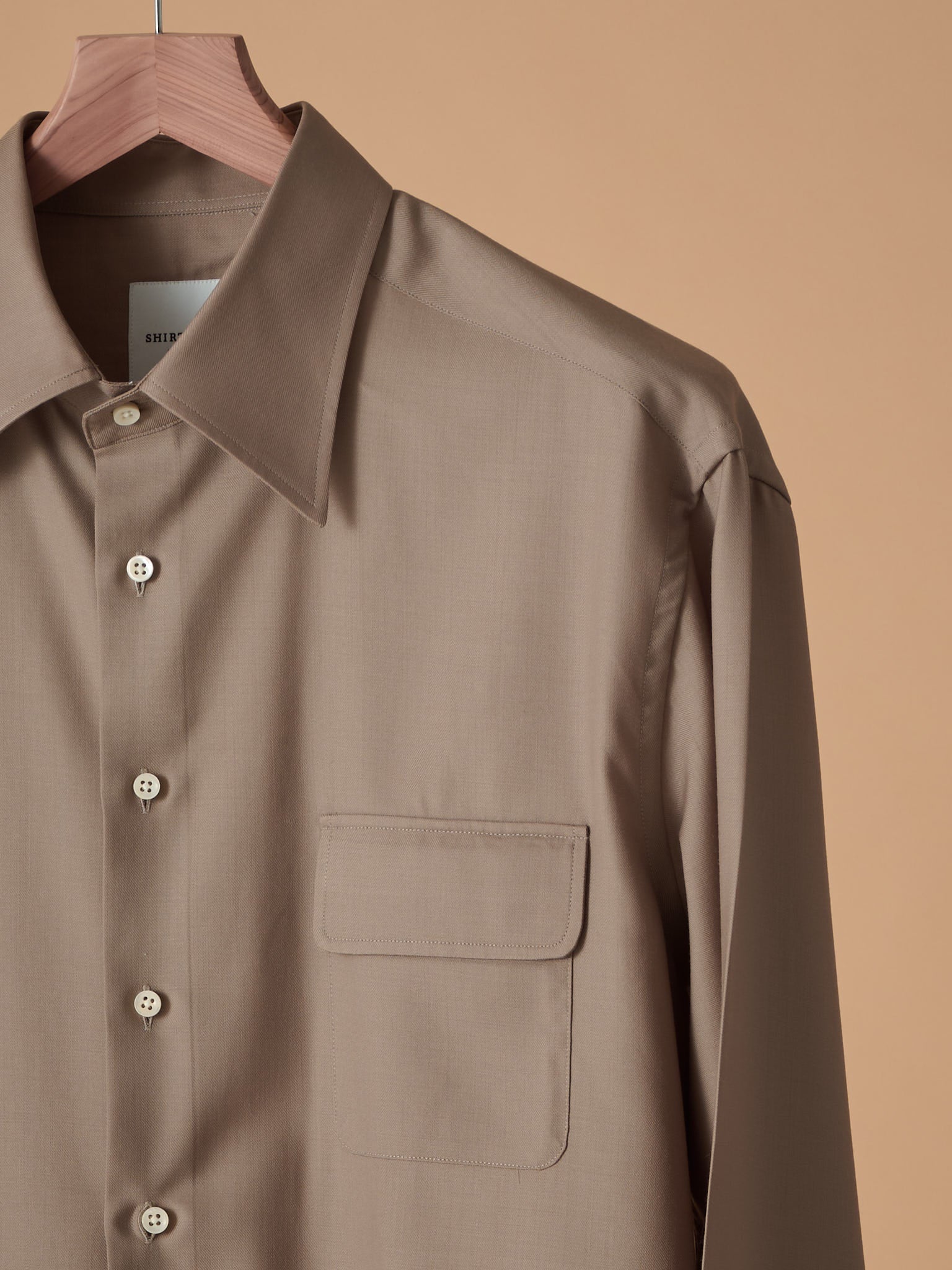 Ett lyxigt och skrynkelfritt tyg med fint fall, tillverkat i 100% merinoull. Här presenterad i en beige/grå ton med ficklocksficka och vår populära Turndown-krage. Klä upp modellen med kostym och slips eller lämna två knappar uppknäppta för en mer casual look tillsammans med jeans. Merinoullen har en utmärkt andningsförmåga för sommaren men passar även perfekt som ett lager-på-lager plagg till vinterhalvåret. Vi rekommenderar att plagget vädras för att bli av med eventuell odör men kan också tvättas i 30 grader.